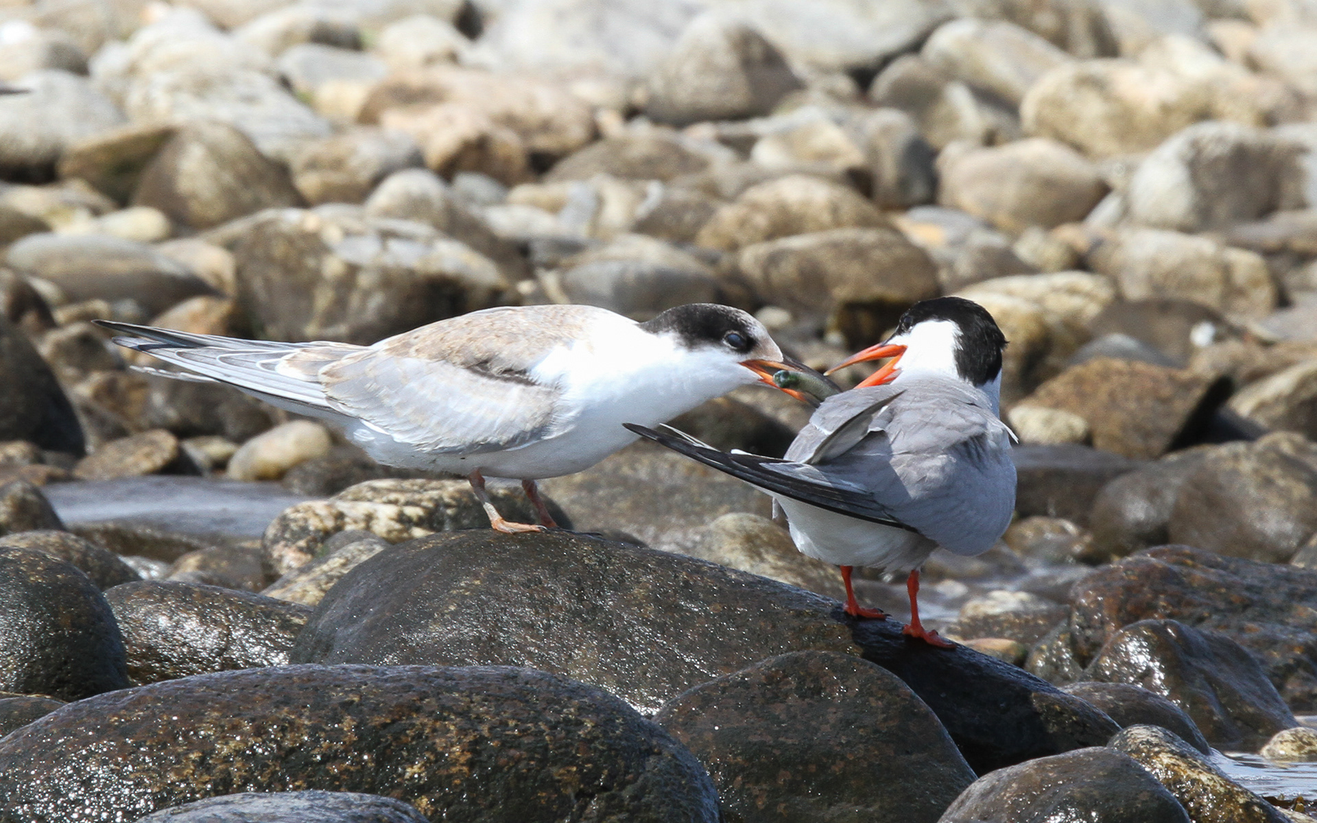 The spit that makes up the west end of Cockenoe Island is a traditional nesting site for Common Terns and a resting site for migrating shorebirds. Today adult Terns took turns bringing fish back to their rapidly growing young who have fledged but will gladly take food.